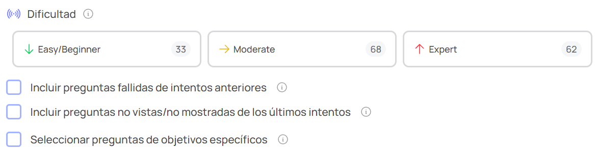 Filtros de preguntas: personaliza tu intento filtrando preguntas según: