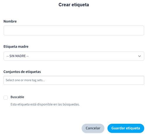 - Etiqueta madre: Selecciona la etiqueta principal. Si estás creando una etiqueta principal, deja la opción como SIN MADRE.