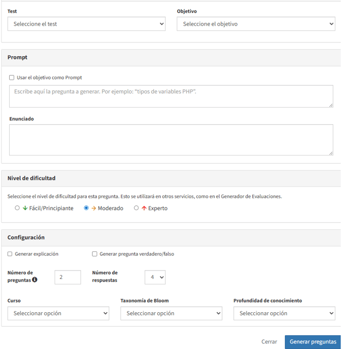 - Número de preguntas: selecciona cuántas preguntas deseas generar.