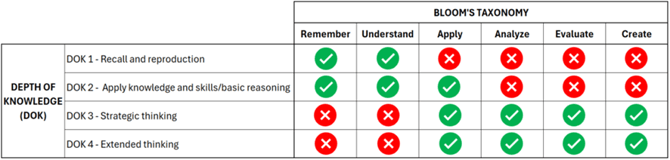IMPORTANTE: Algunos niveles de la taxonomía de Bloom pueden ser incompatibles con los niveles de profundidad del conocimiento: |