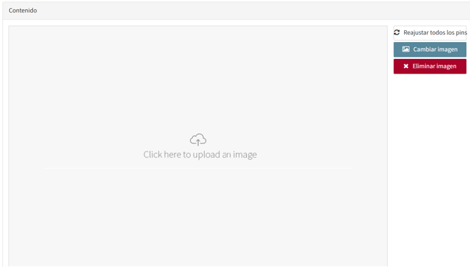 En la sección Contenido, selecciona la imagen desde tu ordenador (o desde la Biblioteca Multimedia si ya la habías cargado previamente). Después de seleccionar la imagen, establece el punto que el candidato debe seleccionar para que la respuesta se considere correcta.