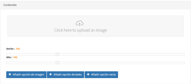 En la sección Contenido, añade la imagen base que contiene los espacios en blanco para las respuestas y las imágenes de respuesta.
