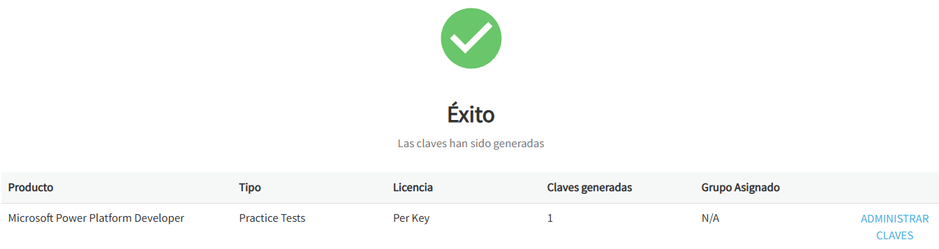 8) Haz clic en Añadir al carrito para seguir generando nuevas claves o en Solicitar.