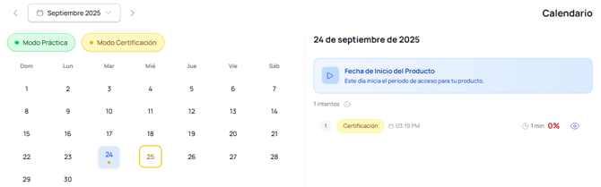 4) Filtra por el mes del intento y selecciona el día en que lo completaste.