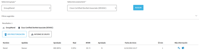 - Si deseas ver la puntuación del grupo, haz clic en INFORME DE GRUPO