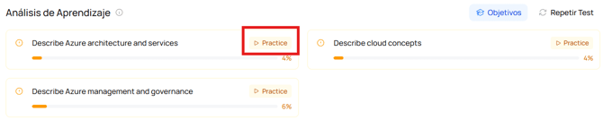 Método alternativo: Para lanzar un intento enfocado en un solo objetivo, ve a la pestaña Objectivos y haz clic en Practica junto al objetivo deseado. |