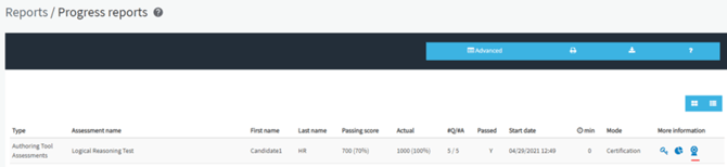 5) Haz clic en el ícono del ojo (a la izquierda del nombre del estudiante) para ver el informe supervisado: