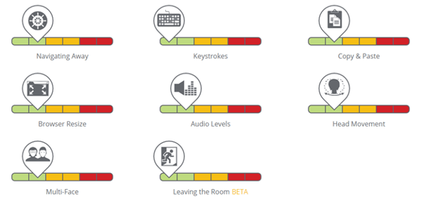 La severidad de estas métricas puede cambiarse en cualquier momento, lo que provocará un re-cálculo del nivel de sospecha de un examen supervisado por Proctorio. Haz clic en el elemento que deseas cambiar y arrástralo al nivel deseado.