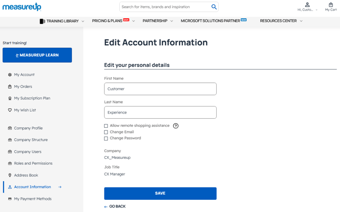 Gestiona tu cuenta de MeasureUp: actualiza tu información, consulta tus pedidos y controla tus suscripciones