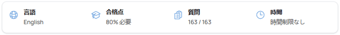 実際の試験と同じ 問題数 と 制限時間 が適用されます。