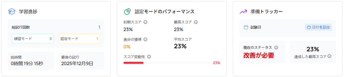公式認定試験に対して、現在どの程度の準備ができているかを示します。