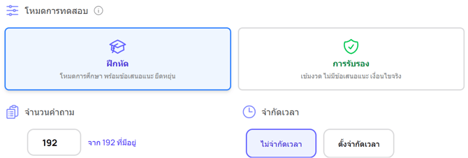 - โหมดการรับรอง: จำลองสภาพแวดล้อมของการสอบจริง