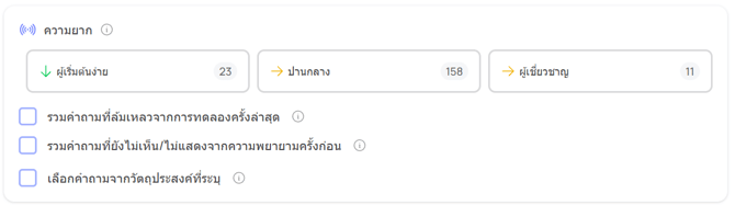 ตัวกรองคำถาม: ปรับแต่งความพยายามของคุณโดยกรองคำถามตาม: