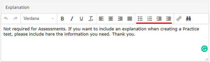 ในช่อง Stem และ Explanation จะมีแถบเครื่องมือจัดรูปแบบที่ใช้จัดข้อความได้ในบางกรณี