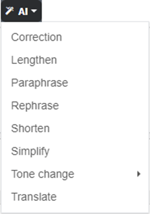 AI Refinement (การปรับปรุงโดย AI) ทุกฟิลด์มีตัวเลือก AI ซึ่งช่วยปรับปรุงคุณภาพ ชัดเจน และโครงสร้างของเนื้อหาที่สร้างโดย AI ได้ตามหมวดหมู่ที่มีให้เลือก