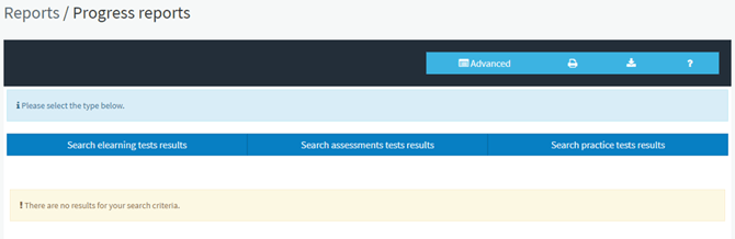 กรองผลลัพธ์โดยคลิกที่แท็บ: eLearning, Assessments, Practice Tests