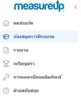 - ออกจากระบบ: ออกจากบัญชี MeasureUp Learn ของคุณ