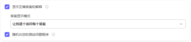 - 测试行为:定义正确答案和解释的显示方式及顺序