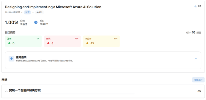 - 问题摘要:正确、错误和未回答问题的数量(点击每个框将在目标部分按状态筛选问题)
