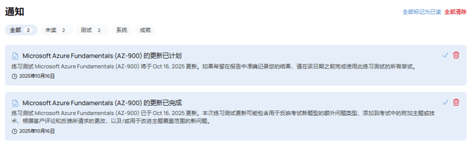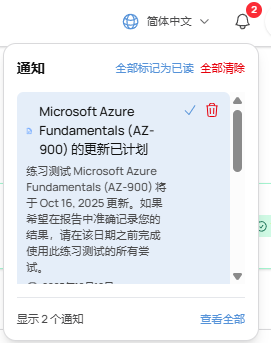 通过 MeasureUp Learn 的 通知面板,及时了解产品更新、技术警报和账户相关信息