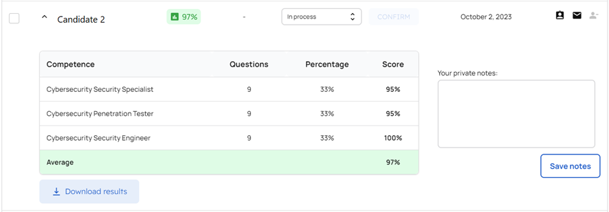 您可以查看其按能力的分数、输入私人备注或更改招聘状态