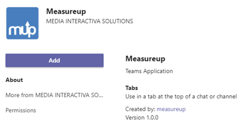 注意:您必须是 Microsoft Teams 团队的所有者,才能添加 MeasureUp 应用