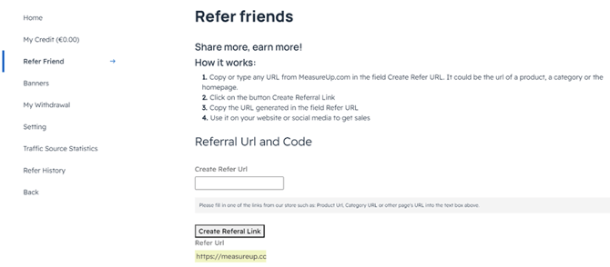 - 如果有人使用该链接并在 MeasureUp 网站购买产品,您将获得佣金累计