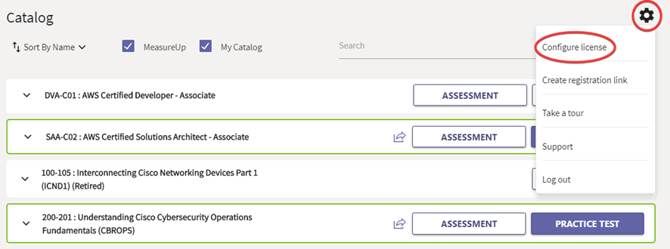 要查看按 MeasureUp 目录中的产品筛选的报告,请点击 MeasureUp 报告 (MEASUREUP REPORT)