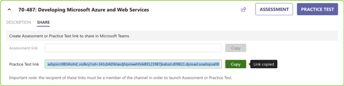 现在,测试或评估已与该频道中的人员共享,他们可以通过点击 MeasureUp 选项卡轻松访问。